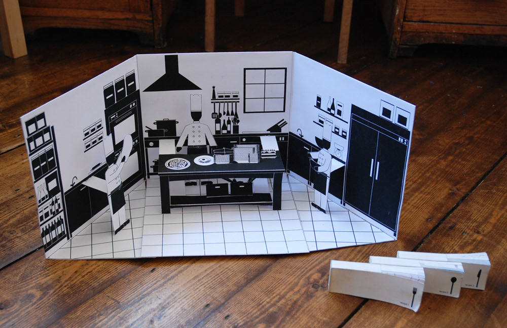 Screen printed pop-up book with a set of 3 flick books Limited edition. 10 copies