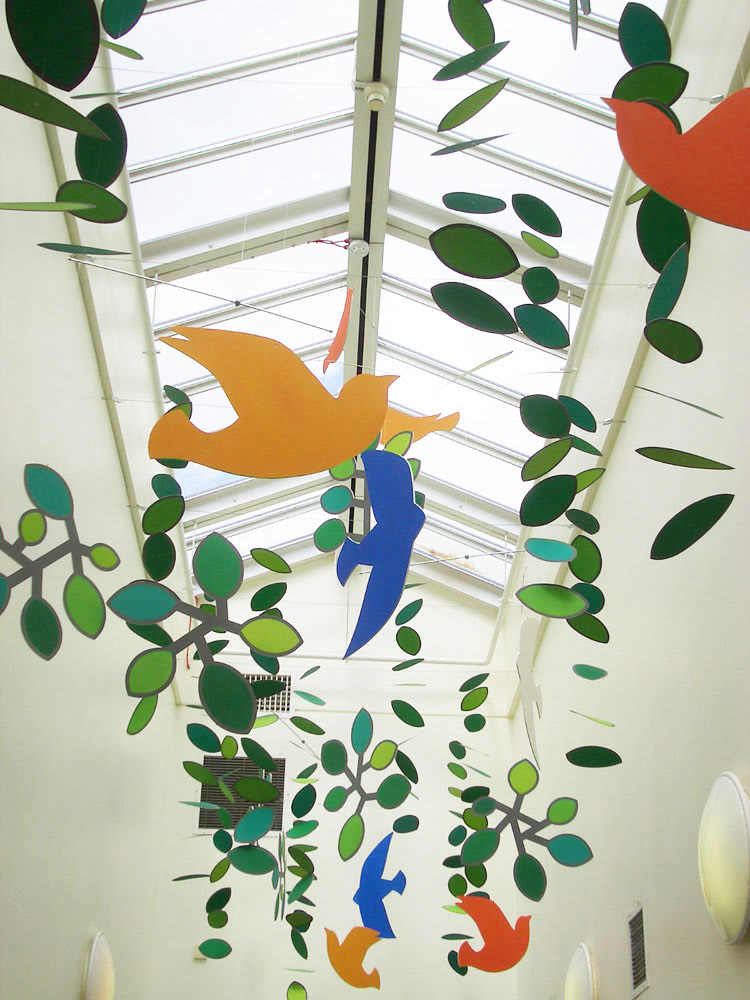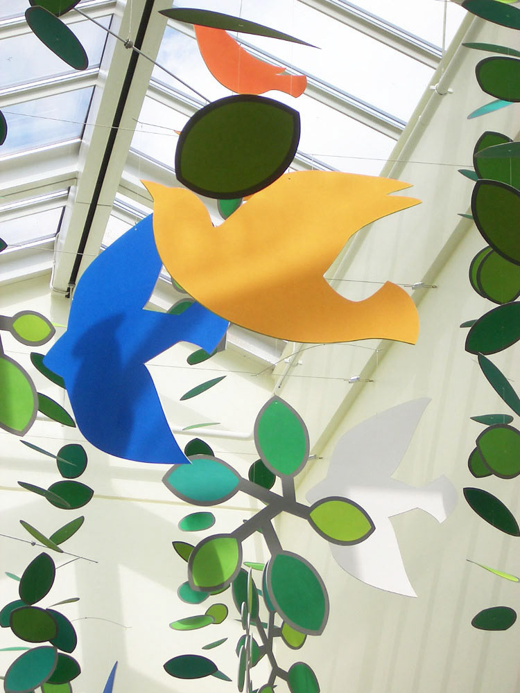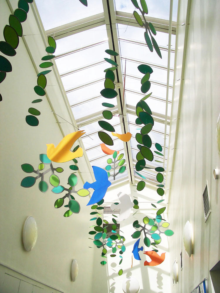 A sculpture commissioned by the Nightingale Project. Screen printed handmade mobile to brighten up the 10 meter long lightwell corridor in the adult ward at South Kensington and Chelsea Mental Health Centre.